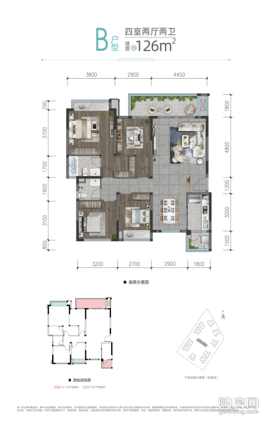 B戶型(4室2廳,126平,南北)
