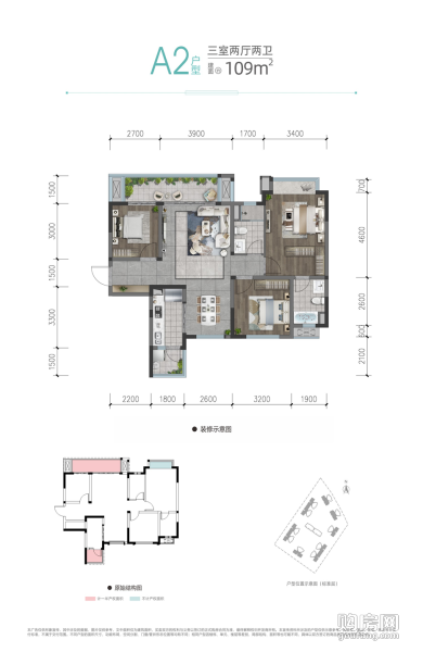 A2戶型(3室2廳,109平,南北)