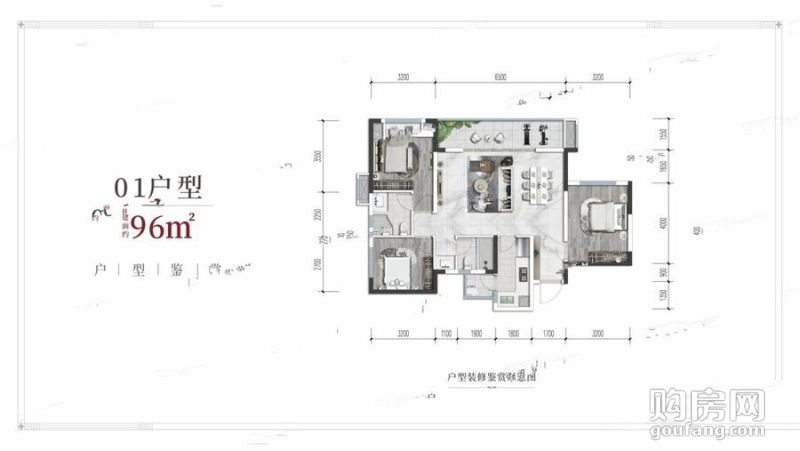 01戶型(3室2廳,96平,南北)
