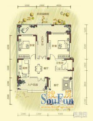 一期6號(hào)樓合院別墅R1戶型(2室2廳,88.32平,)
