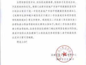 公告內容:為貫徹落實黨中央、國務院決策部署,堅持房子是用來住的、不是用來炒的定位,根據《成都市房地產市場平穩健康發展領導小組辦公室關于進一步促進房地產市場平穩健康發展的通知》《成都市住房和城鄉建設局關于建立二手住房成交參考價格發布機制的通知》等文件精神,現將購買二手住房(再交易住房)辦理住房公積金貸款的相關事項公告如下:購買二手住房辦理住房公積金貸款的,住房價值按住建部門確認的網簽備案合同價款、房屋評估價以及住建部門公布的成交參考價格三者中的最低值認定并計算可貸額度。