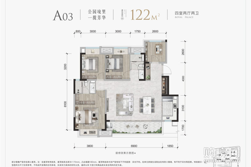 北京城建國譽府A03戶型(4室2廳,122平,南北)