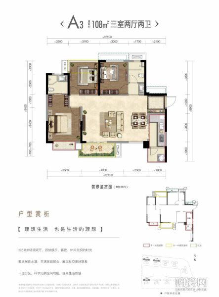 復地天府灣A3戶型(3室2廳,108平,南)