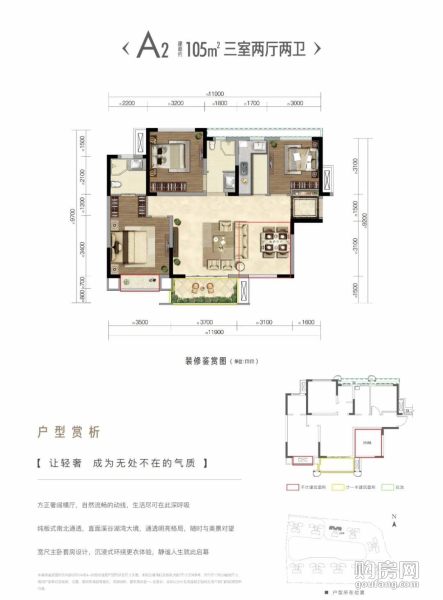 復地天府灣A2戶型(3室2廳,105平,南)