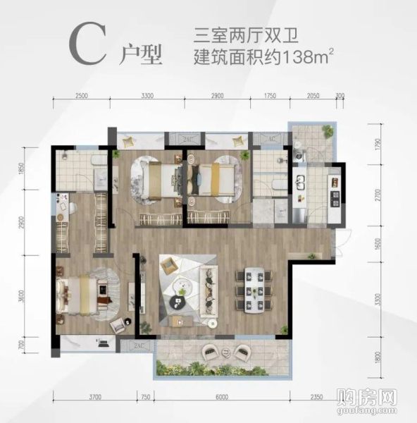 C戶型(3室2廳,138平,南)