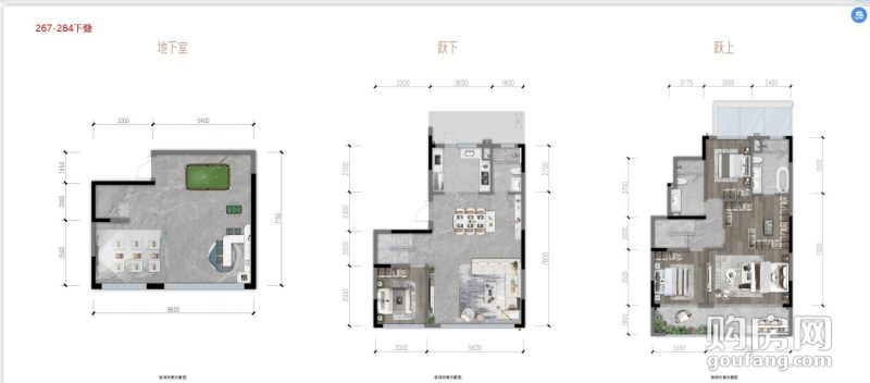 信達麓湖左岸-建面約267-284㎡戶型(4室3廳,267平,南北)