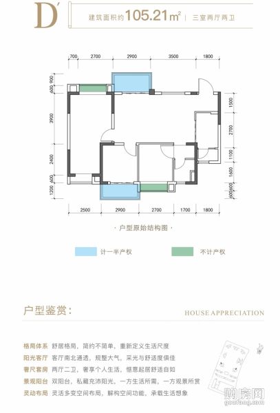成都萬朵城D戶型(3室2廳,105.21平,南北)