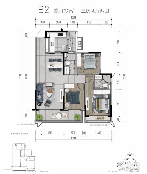 華潤置地未來之城B2戶型(3室2廳,122平,南)