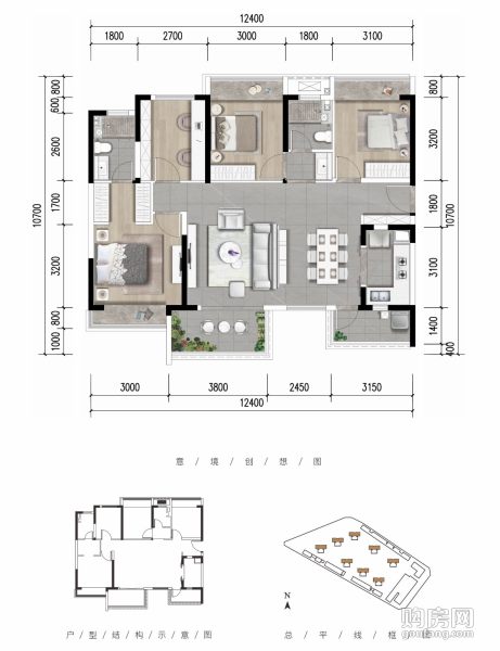 華潤置地未來之城D戶型(3室2廳,124平,南)