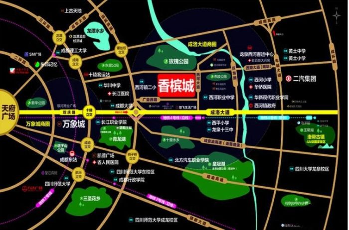 香檳城項目位于東進核心區的西河板塊,門口的西陵大道-大運會主通道,未來建成通車可直達三環,而且西陵大道目前已確定為2021年第31屆世界大運會主賽場至大運村的專用通道。距離地鐵4號線西河站僅800米,10站約20分鐘即可到達春熙路,以及成洛大道、繞城高速、車城大道、城南高速、成渝高速可通達全城。商業配套由金泉&藍光打造的統一招商運營,有城東首個家庭一站式消費中心,其中涵蓋影院、品牌超市、美食、教育、游樂、休閑等產業。該項目門口百畝“玫瑰公園”已經呈現,正對面就是規劃總面積約2500畝西江河濕地公園,項目西側成都市內最大的生態湖公園-青龍湖濕地生態公園,稀缺自然資源不可復制,區域價值更具優勢。成都大運村板塊香檳城值得買。