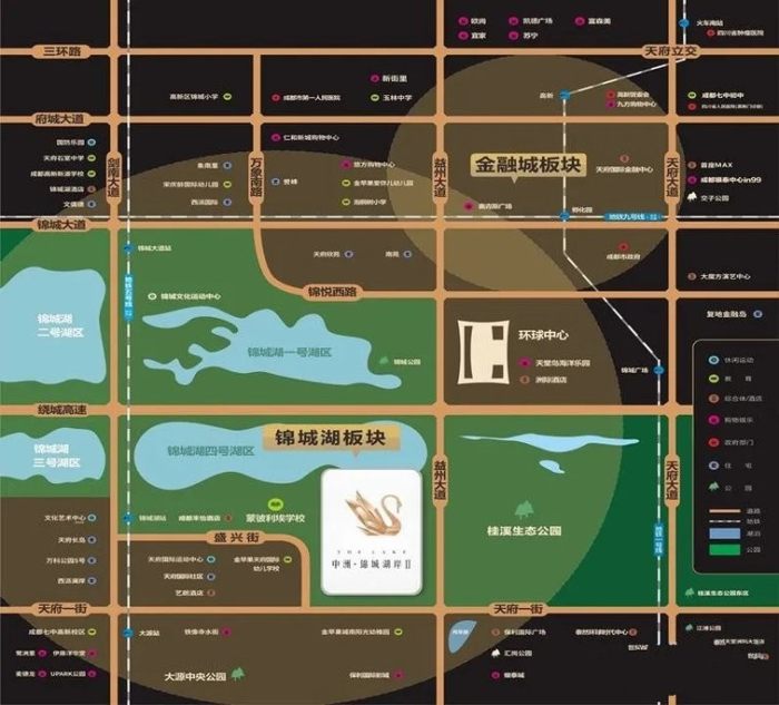中洲錦城湖岸在益州大道和天府一街的交匯處,和蒙彼利埃小學一街之隔,這個學校是成都已經投用的三所國際公立學校之一,師資力量雄厚,該小區的對口中學是名氣響當當的石室中學。生態資源有錦城湖公園、桂溪生態公園,環境優越。商業配套有環球中心、鐵像寺水街,能夠滿足住戶的日常生活需要。項目周邊有益州大道、劍南大道、天府大道,交通配套還有還有地鐵1號線、5號線,出行選擇多,交通便利。
